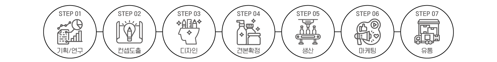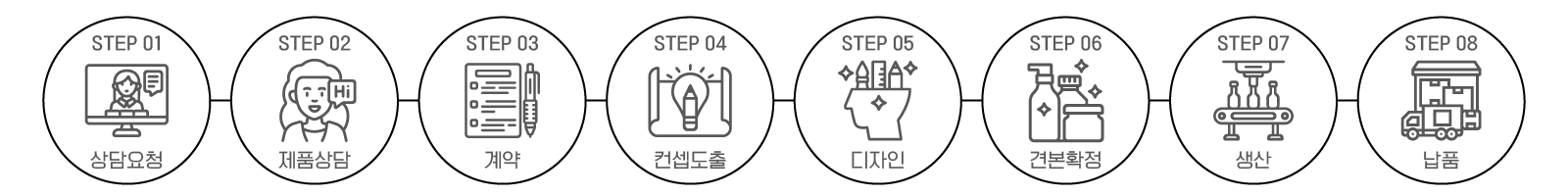노하우를 바탕으로 상품기획에서 개발, 생산, 품질관리 및 출고까지 전 과정에 대한 토탈서비스를 실현하는 시스템입니다.
